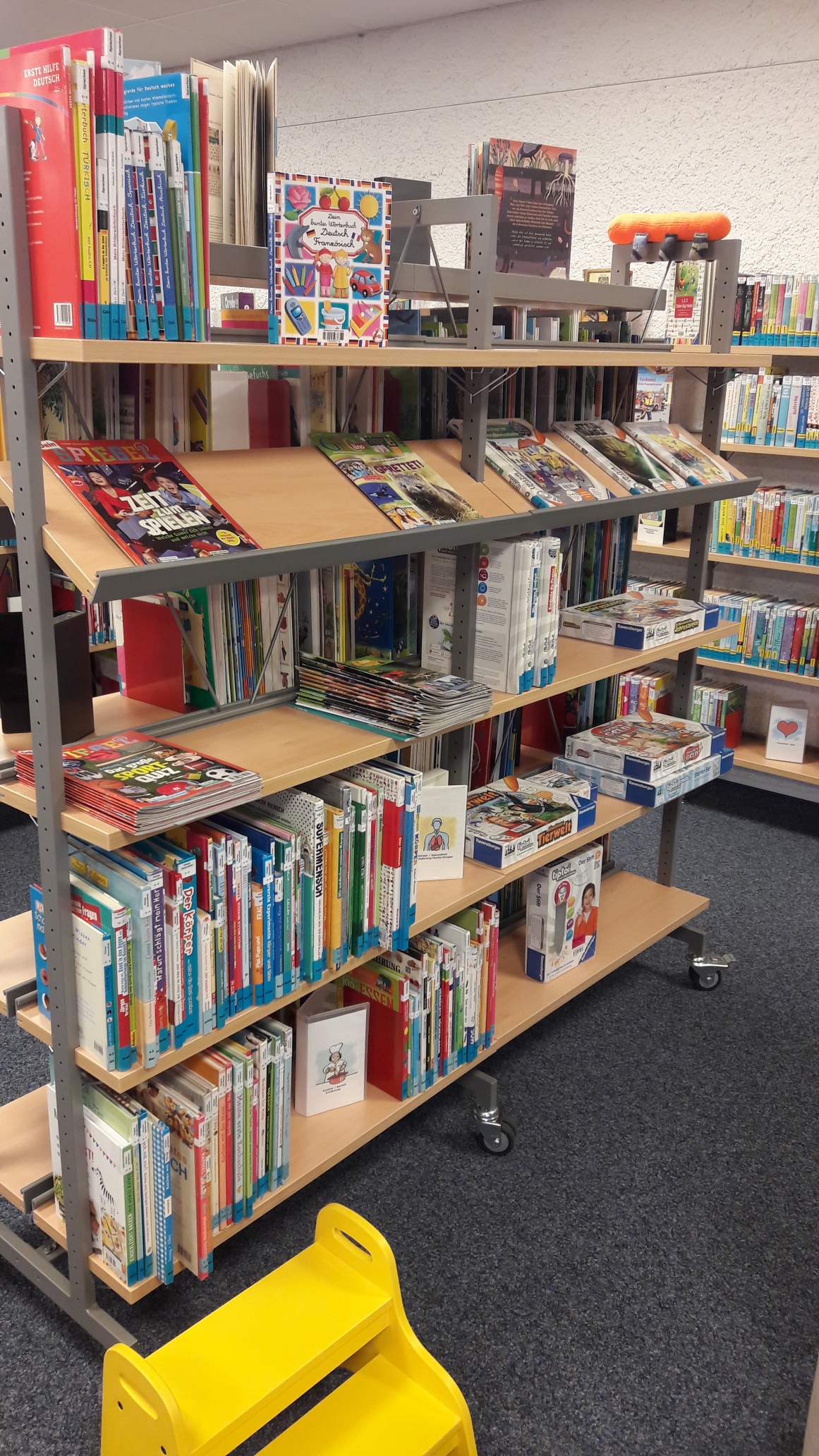 Außerdem gibt es Erzählungen, Sachbücher, Comics, Spiele, Hörbücher, DVDs und Zeitschriften.